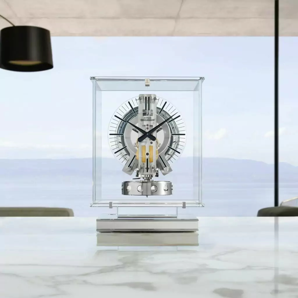 Song song với những thành tựu về đồng hồ đeo tay, Jaeger-LeCoultre còn tạo ra Atmos – một sáng tạo siêu phàm đã chạm ngưỡng thực thể cơ khí khi gần như tách biệt khỏi các quy luật năng lượng thông thường. Được phát triển dựa trên nguyên lý của Jean-Léon Reutter, Atmos vận hành bằng sự giãn nở của hỗn hợp khí trong một hộp kín khi nhiệt độ môi trường thay đổi. Một sự biến thiên chỉ 1 độ C cũng đủ để duy trì hoạt động cho cỗ máy trong 48 giờ.