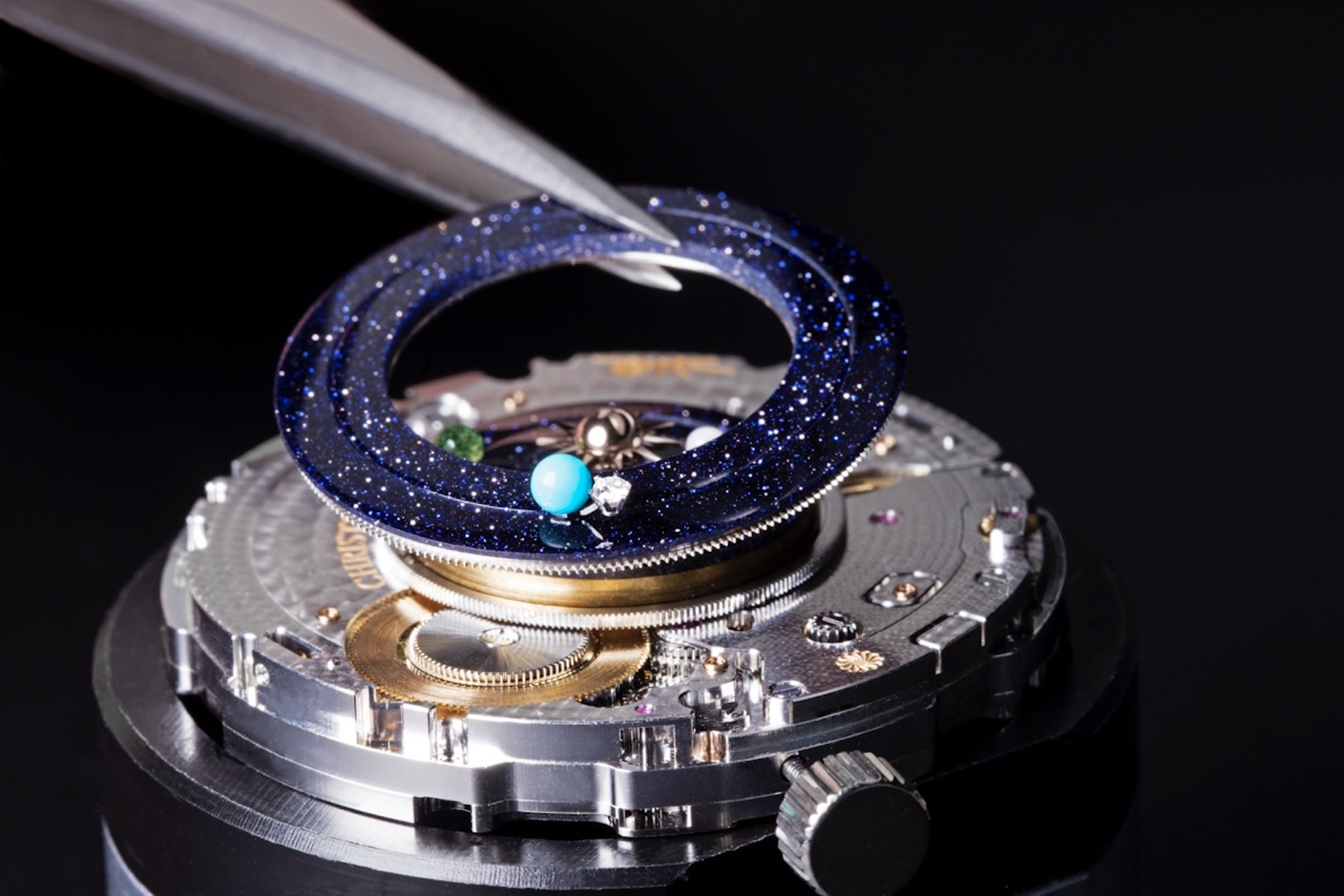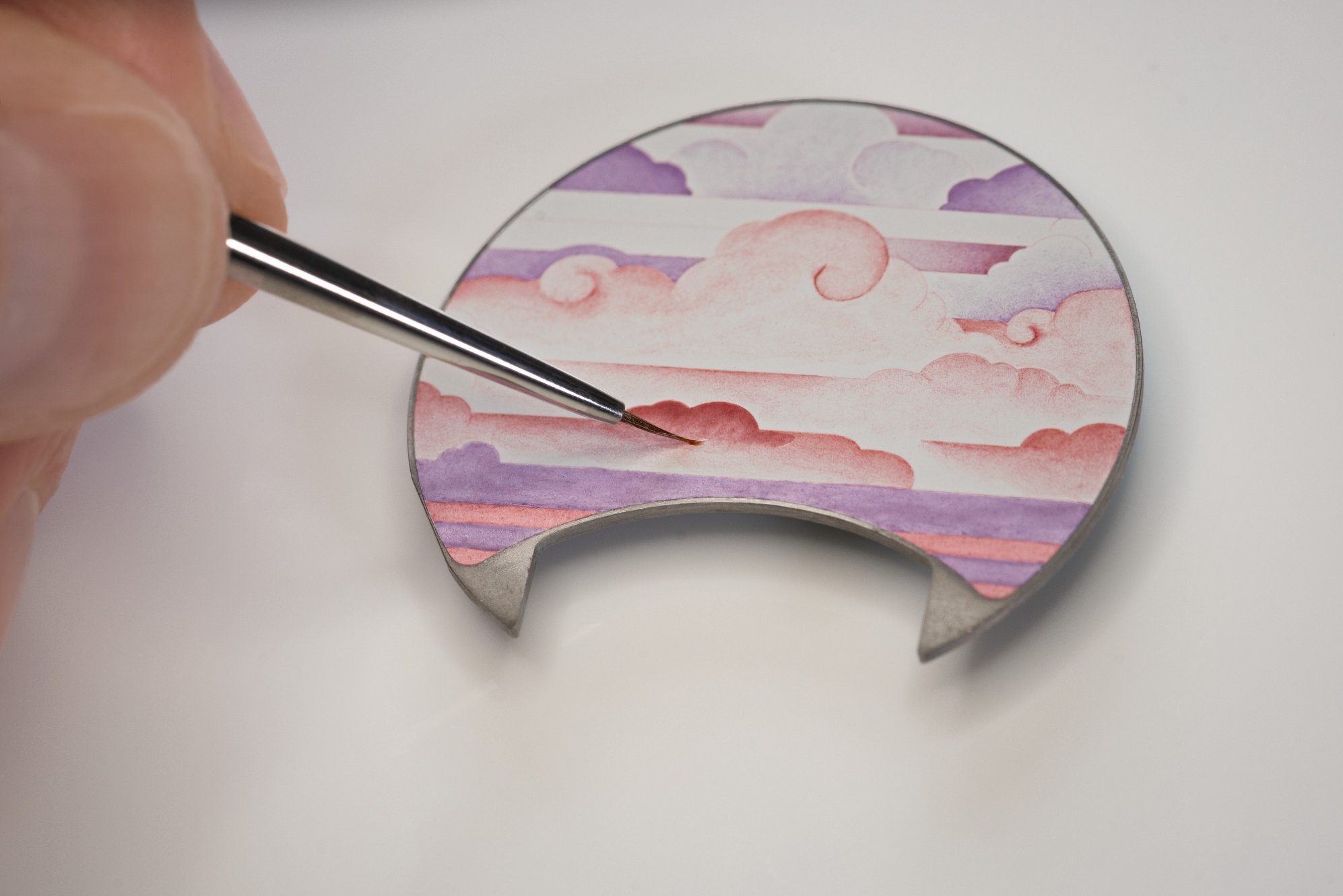 Để đạt được hiệu ứng này, nghệ nhân phải nung mỗi mặt số khoảng 10 lần, một công việc phức tạp nhằm ghi lại mọi sắc thái và chi tiết của bầu trời. Mỗi mặt số mất khoảng 40 giờ để hoàn thành. Cảnh tượng này tiếp tục ở nắp lưng, với chi tiết vỏ vàng được chạm khắc và một hoạ tiết tráng men, tạo nên một tác phẩm nghệ thuật thực sự.
