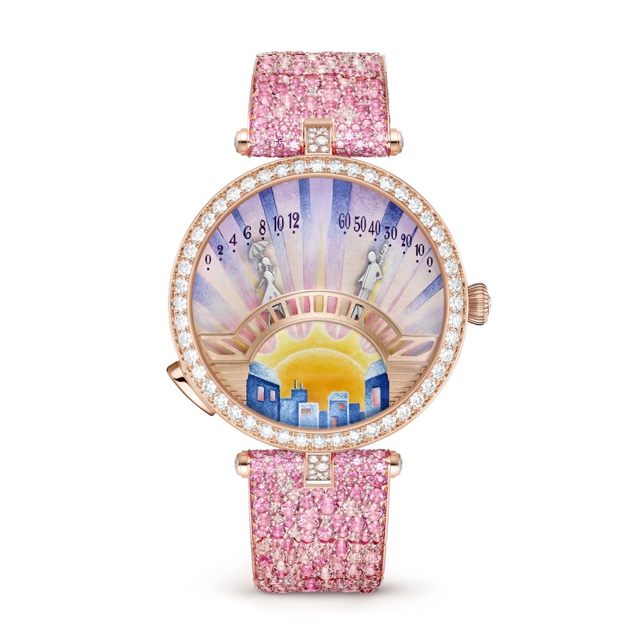 Cũng trong năm 2025, Van Cleef & Arpels khắc họa đôi tình nhân gặp nhau vào những khoảnh khắc khác nhau trong ngày, cụ thể là bình minh, buổi sáng, hoàng hôn và đêm trăng. Các mặt số là một cảnh tượng ngoạn mục, được chế tác bằng kỹ thuật tráng men grisaille màu. Một bảng màu nước tinh tế khắc họa thành phố vào những thời điểm khác nhau vào lúc ngày và đêm. Khi bình minh, những tia nắng len lỏi qua các tòa nhà trong một chùm sáng rực rỡ của các sắc vàng, cam, tím và hồng, trong khi bầu trời lấp lánh trong một dải màu chuyển sắc vạn hoa của tím, hồng và cam khi mặt trời lặn.