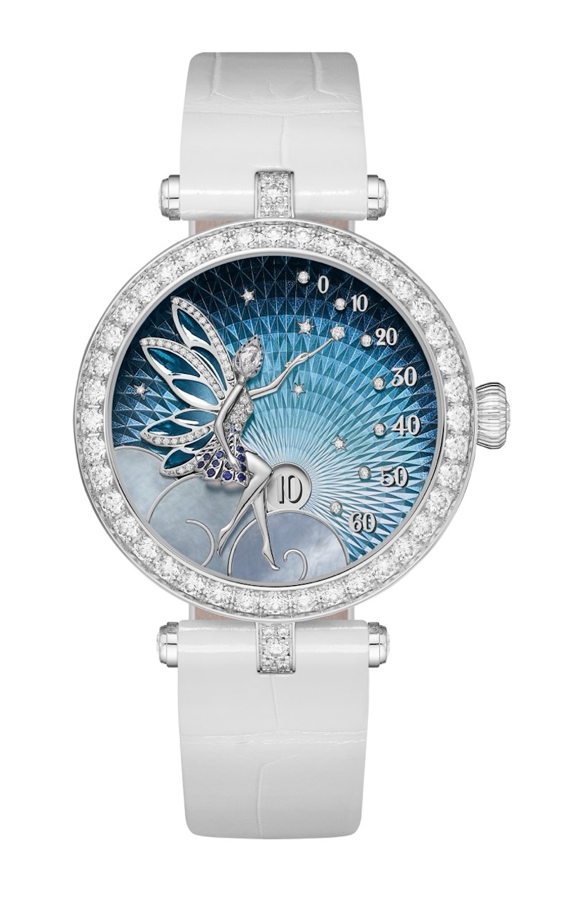 Nàng lần đầu tiên bay vào thế giới của Van Cleef & Arpels vào những năm 1940 dưới dạng một chiếc kẹp áo điêu khắc, khảm đá quý. Ngày nay, nàng trở lại trong tuyệt tác Lady Féerie, duyên dáng đậu trên một đám mây, cây đũa phép của nàng tinh tế điều khiển phút.