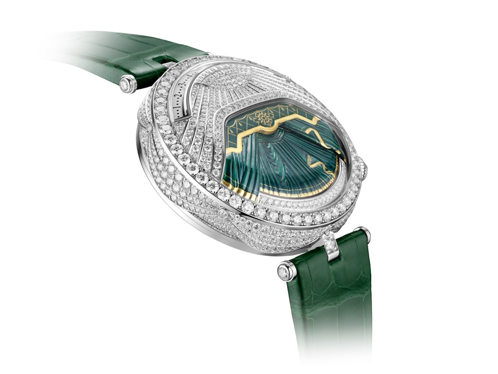 Van Cleef & Arpels biến nghệ thuật chế tác đồng hồ thành một sân khấu, nơi những câu chuyện tình yêu, cổ tích và những khoảnh khắc đẹp đẽ thoáng qua được tái hiện trên mặt số thông qua các cơ chế phức tạp tài tình và nghệ thuật thủ công métiers d’art.