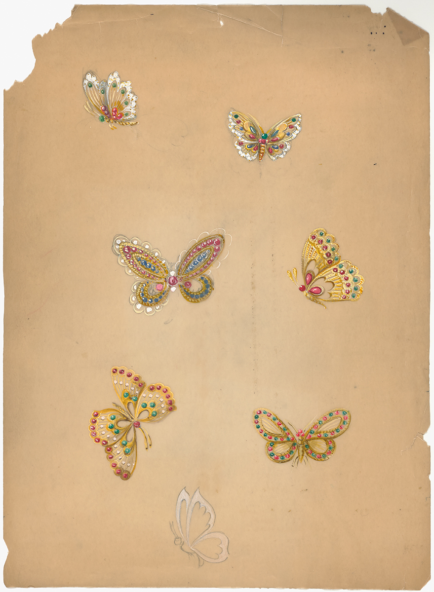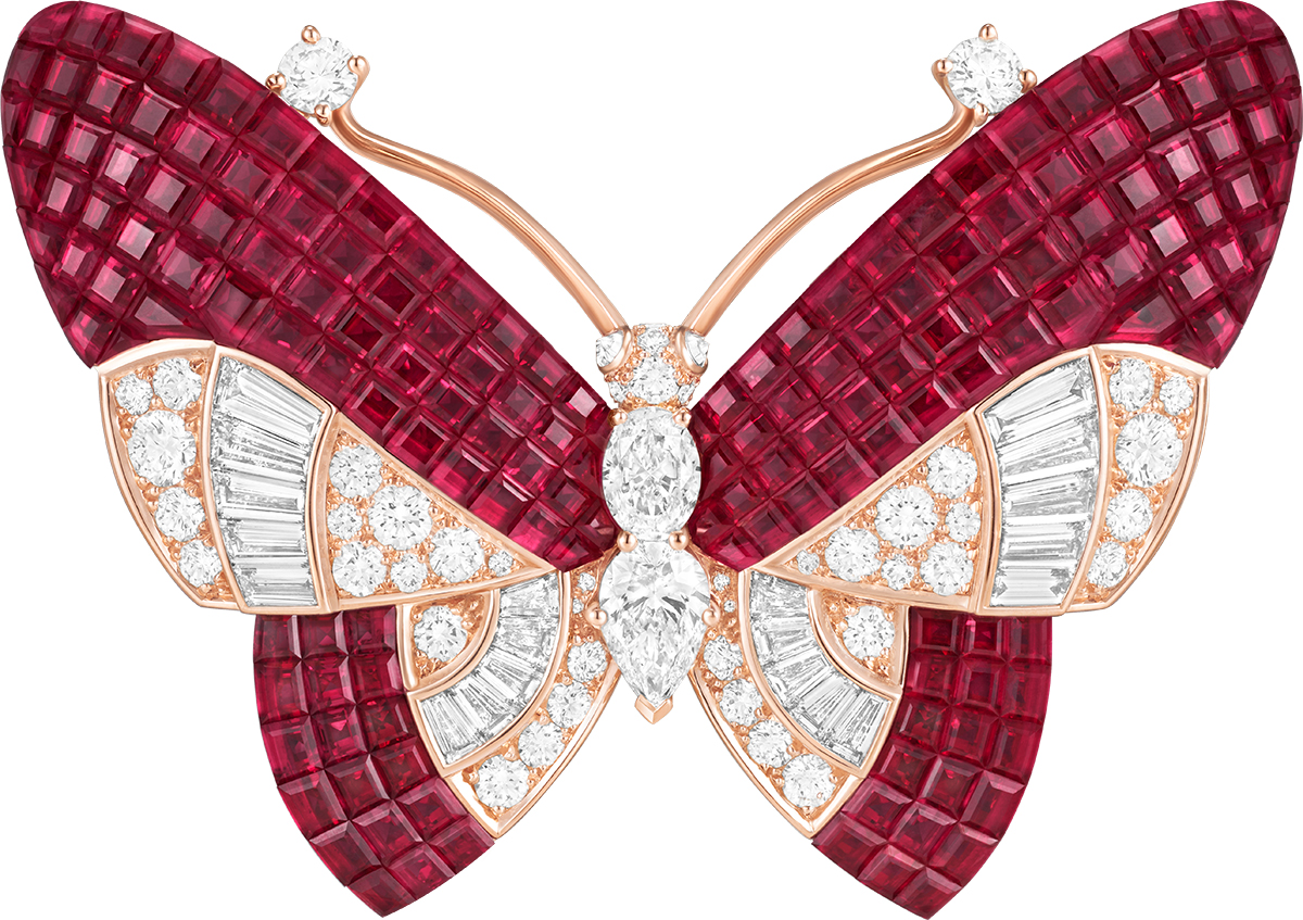 Qua nhiều thập kỷ, cánh bướm được diễn giải bằng vô vàn chất liệu và kỹ thuật: Kim cương, sapphire, san hô, malachite, xà cừ, vàng, men, và cả kỹ thuật Mystery Set được cấp bằng sáng chế năm 1933.
