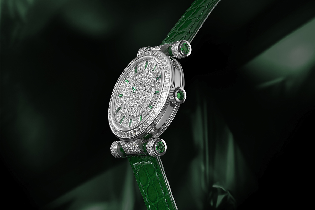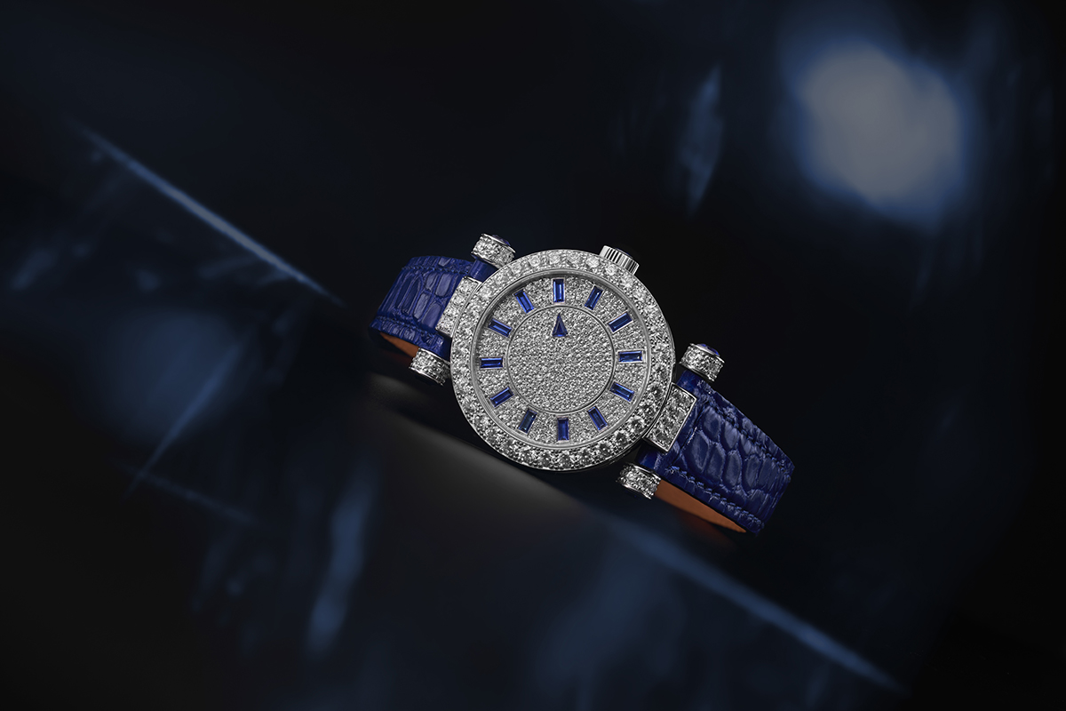 Tại bộ phận đĩa giây được tô điểm với một viên kim cương giác cắt hình tam giác hoặc đá quý với chức năng như một chỉ báo giây tinh tế. Chi tiết ấy còn mang yếu tố thẩm mỹ đầy thi vị, như đang bắt nhịp dòng chảy thời gian liên tục bằng một vẻ đẹp cuốn hút và đầy thanh nhã.