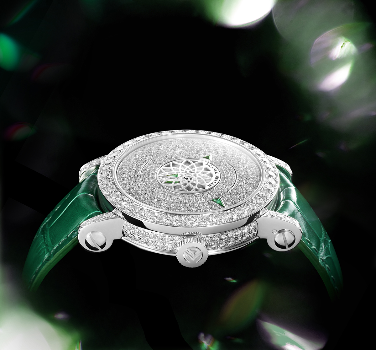 Tại tâm mặt số là chi tiết đĩa với viên kim cương được đặt trọn vẹn trong một hoạ tiết hình học tinh xảo gợi nhớ đến nét vẽ spirograph hình xoắn ốc, là lời tôn vinh đến bản chất của sự xoay chuyển. Chi tiết hình học phức tạp trên đĩa phản chiếu chuyển động liên tục của ba đĩa hiển thị: đĩa giờ, phút và giây đã định hình nên cách đọc thời gian đầy khác biệt của chiếc đồng hồ này. Mỗi chi tiết cộng hưởng với bộ vỏ đính kim cương, tạo nên một cuộc đối thoại giữa chuyển động và ánh sáng. Lựa chọn hình học trong bố cục không chỉ tôn vinh bản chất tuần hoàn của thời gian mà còn phô bày tay nghề chế tác đỉnh cao của bộ máy Triple Mystery, nơi mỗi vòng xoay mở ra một góc nhìn mới, một phản chiếu mới, và cũng chính là một khoảnh khắc thời gian mới.