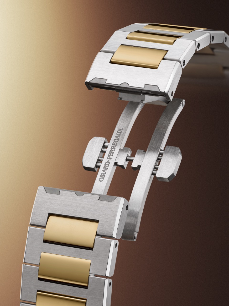 Dây đeo bằng thép và vàng kim tiếp nối tinh thần nguyên bản của Laureato. Sự phức tạp thể hiện qua thiết kế vát dần, trong đó mắt chữ H bằng thép mảnh dần về phía khóa gập. Ở phiên bản mới này, các mắt thép được rút ngắn đôi chút, giúp dây ôm sát cổ tay hơn. Bên cạnh đó, mắt nối nửa được bổ sung để tăng sự thoải mái khi đeo.