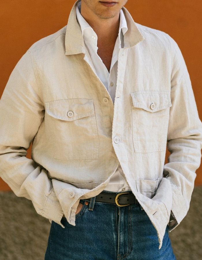 Để đạt được hiệu quả thẩm mỹ cao nhất, hãy chọn overshirt làm từ cotton pha linen hoặc cashmere – chất liệu vừa thoáng nhẹ, vừa mang độ rũ và bề mặt sang trọng đặc trưng. Phối cùng áo thun trắng, quần âu xếp ly hoặc chinos và giày da lười sẽ tạo nên tổng thể tinh gọn, cân bằng hoàn hảo giữa tinh thần smart và casual.