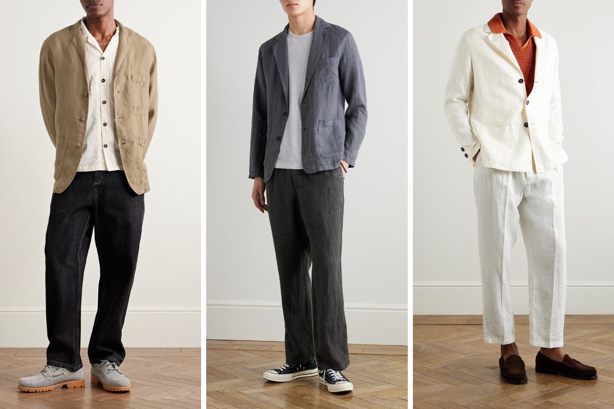 Một blazer màu be hoặc navy phối cùng áo polo, quần linen và giày loafer da lộn sẽ tạo nên tổng thể trang nhã nhưng vẫn thoải mái, đủ hoàn hảo cho những môi trường công sở linh hoạt, sự kiện ban ngày, cuộc hẹn cà phê hay hẹn hò cuối tuần.