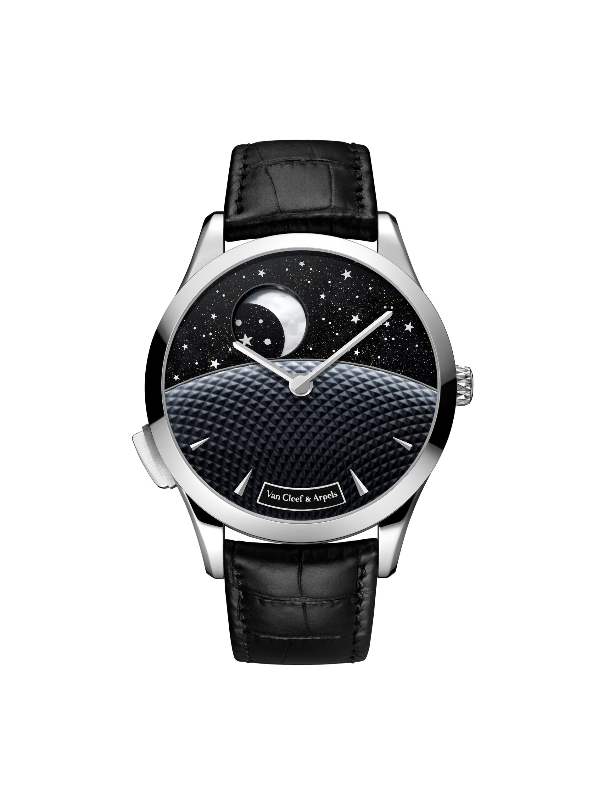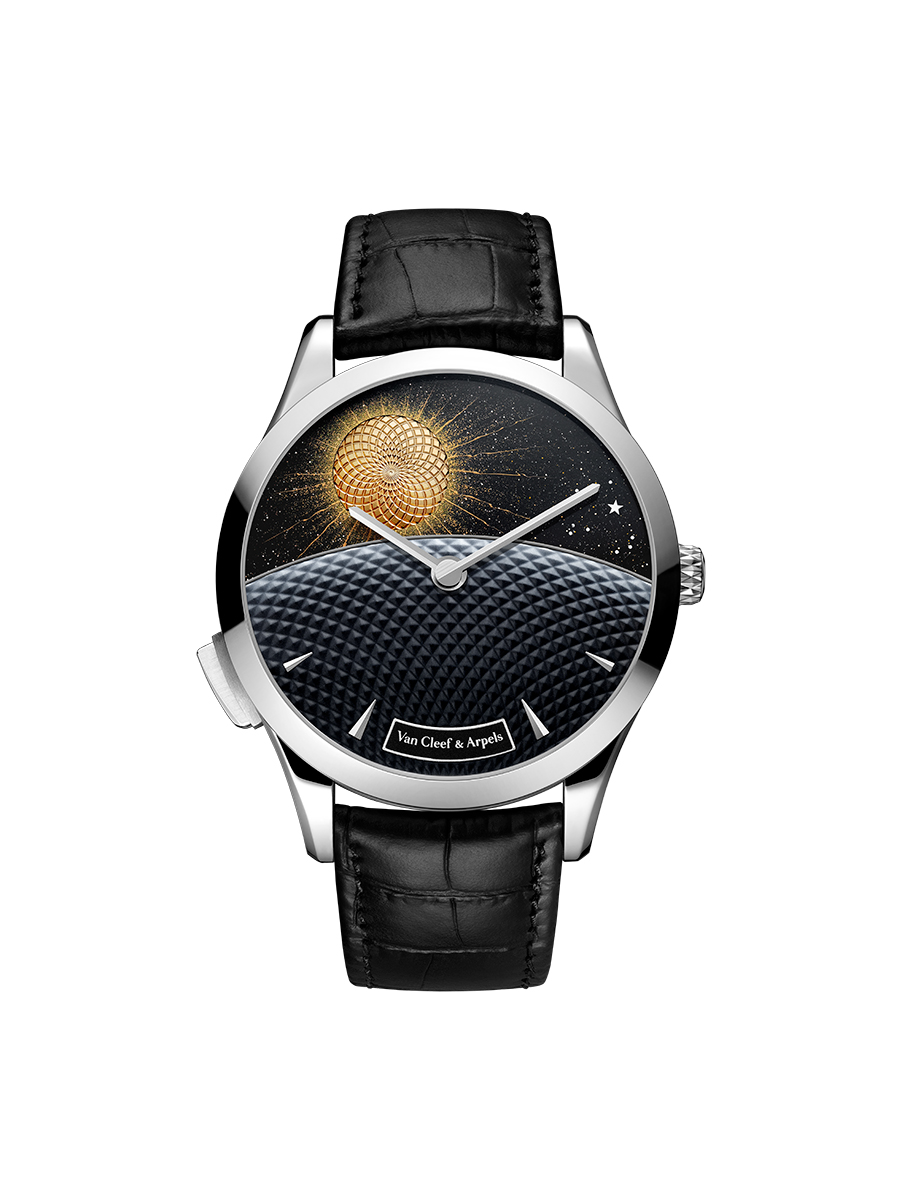 Năm nay, Maison chiêm ngưỡng những biến chuyển tinh tế của Mặt Trăng qua một tạo tác mới trong dòng Poetic Complications. Những giờ khắc của Poetic Astronomy ngân lên nhịp nhàng từ múi giờ này sang múi giờ khác, trong một bố cục thanh nhã tôn vinh nghệ thuật tráng men. Đồng thời, các tuyệt tác trang sức kể chuyện thời gian của Van Cleef & Arpels cũng diễn giải chiều sâu vô tận của bầu trời bằng những chất liệu quý. Cuối cùng, bộ sưu tập Extraordinary Dials chào đón thêm hai mẫu đồng hồ mới, đó là những truyền thuyết tình yêu được đặt trong bối cảnh thiên thể.