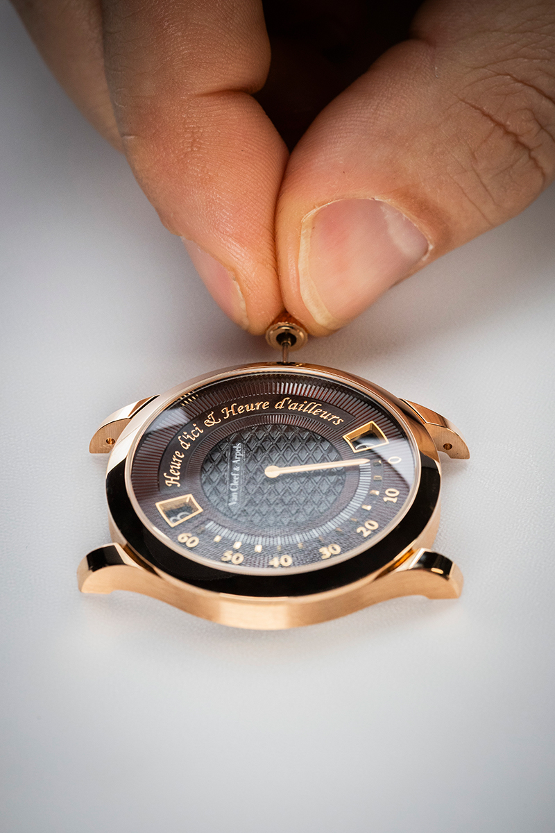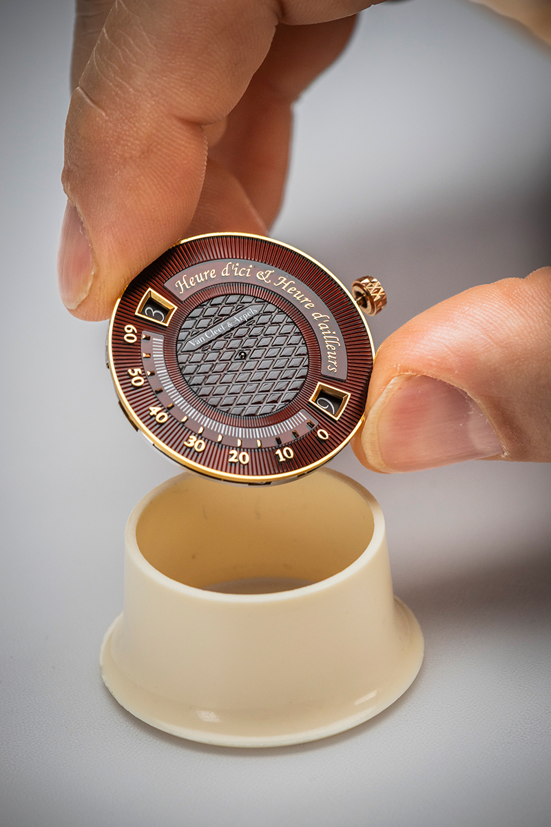 Để thổi hồn vào những mặt số mê hoặc ấy, Van Cleef & Arpels đã kết hợp nhiều nghệ thuật thủ công khác nhau, mỗi kỹ pháp đều đòi hỏi sự kiên nhẫn cùng độ chính xác nghiêm ngặt. Kỹ thuật men champlevé dùng để trang trí nền mặt số, bao gồm khâu tạo hình motif bằng những khoang rãnh được khoét trên nền chất liệu kim loại quý rồi lấp đầy bằng nhiều lớp men. Sau mỗi công đoạn, tác phẩm lại được đưa vào lò nung. Ở lần nung cuối, một quá trình xử lý tương tự cắt mài đá quý sẽ loại bỏ phần vật liệu dư thừa, nhằm phô diễn bố cục rực sáng được viền bằng những đường kim loại mảnh.