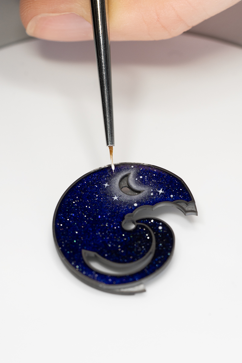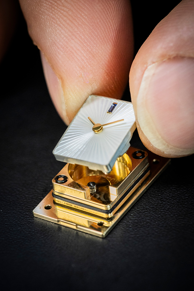Thử thách đầu tiên ấy đi cùng một nhiệm vụ tinh vi không kém: In dấu motif piqué trong lớp men như một lời gợi nhắc đến dấu ấn của Maison, đồng thời tạo nên họa tiết guilloché lan tỏa từ tâm đến rìa ngoài. Để đạt được sự hài hòa giữa hai lớp trang trí này, chất men phải thể hiện được hai cường độ màu sắc khác nhau, bởi độ dày của lớp phủ ảnh hưởng trực tiếp tới sắc độ và độ chatoyancy, tức cách ánh sáng chuyển động trong vật liệu.