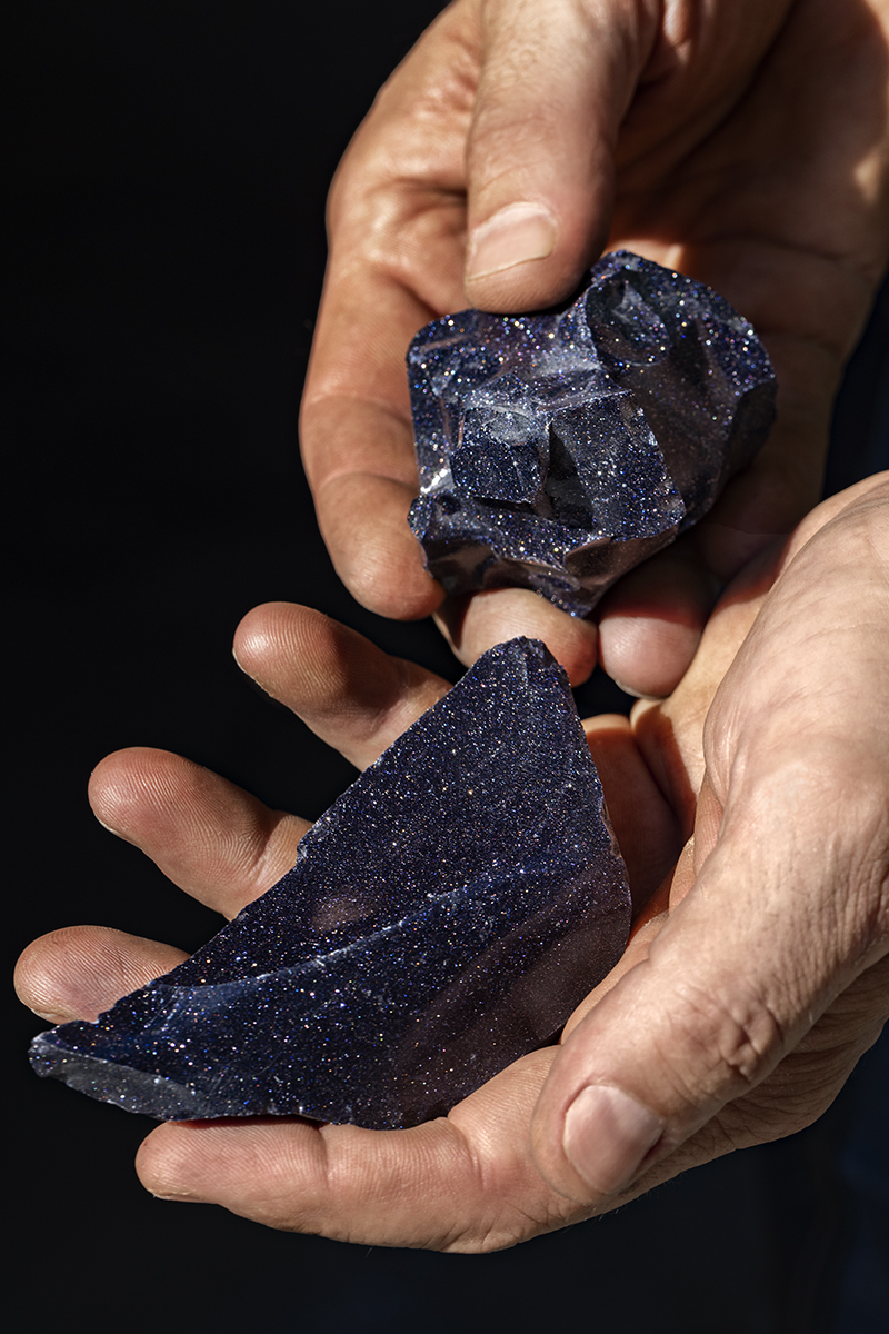 Quá trình tạo nên kính aventurine tại Murano bắt đầu bằng công đoạn nung chảy thủy tinh ở nhiệt độ 1.200°C. Sự hiện diện của quặng khoáng trong quá trình nung khiến khối thủy tinh đạt được sắc xanh thẫm lấp lánh đầy chiều sâu. Sau đó, nồi nung thủy tinh phải được để nguội tự nhiên hoàn toàn trước khi được đập vỡ bằng búa. Chỉ riêng bước này đã mất trọn một tháng.